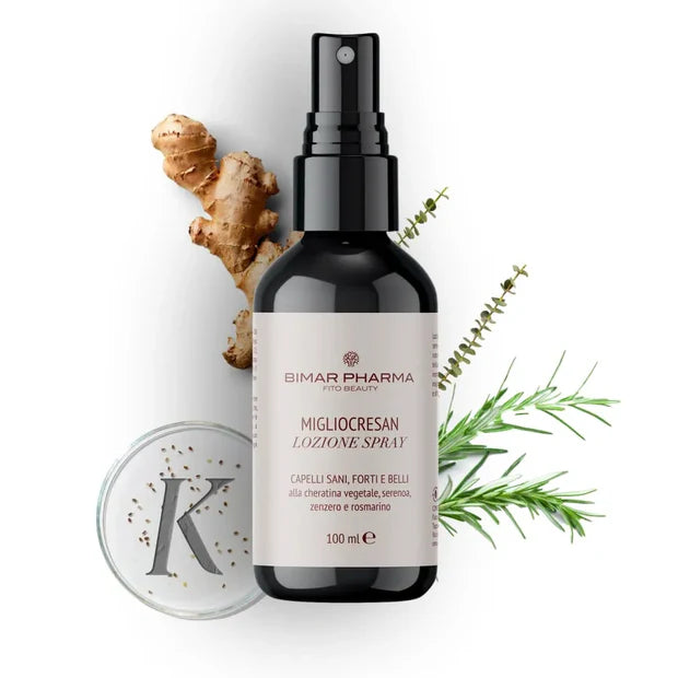 Ogni giorno noti capelli nel lavandino o sul pettine? La tua chioma sembra più sottile e fragile, e le soluzioni provate finora non hanno dato i risultati sperati? La Lozione Spray professionale Migliocresan è progettata per combattere la caduta dei capelli con una potente combinazione di Cheratina Vegetale, Serenoa Repens, Zenzero e Rosmarino. Questa formula avanzata lavora in profondità, nutrendo e rafforzando i capelli dalla radice, per bloccare la caduta e stimolare una crescita sana.