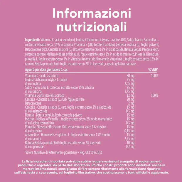 Integratore 100% naturale per contrastare cellulite e ritenzione idrica, con Betulla, Pilosella, Centella, Melissa, Salice Bianco, Amamelide e Vitamine C ed E